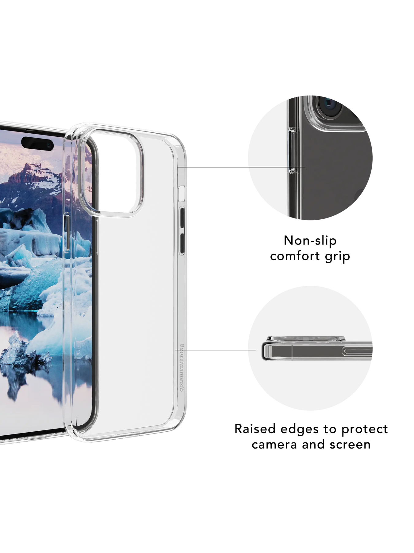 Greenland Clear is a clear impact protective soft case made from 100% recycled and recyclable plastic materials. With easy-to-press buttons and raised edges to protect camera and screen, Greenland offers complete protection of your phone.