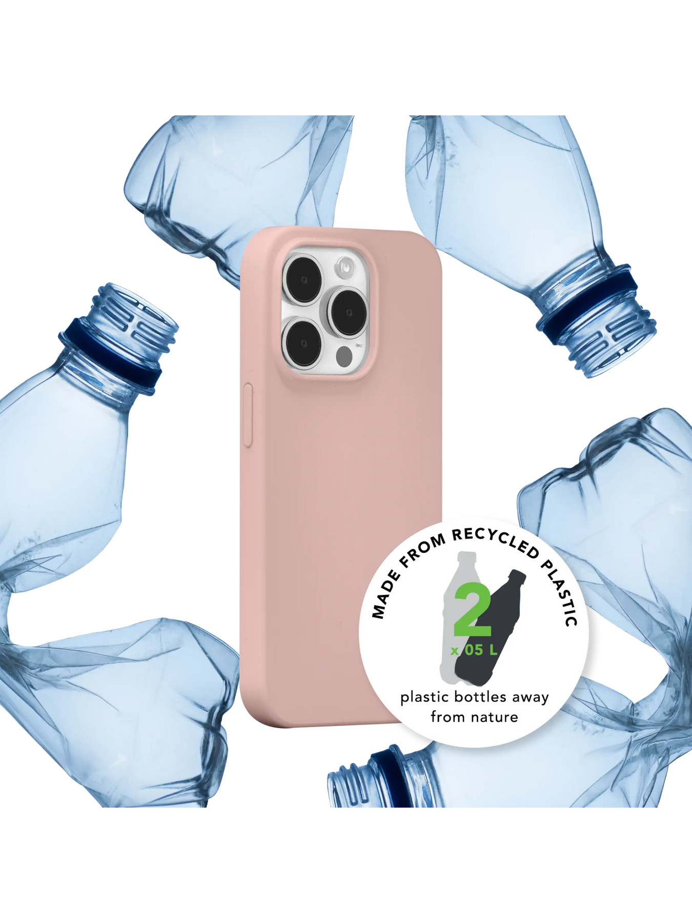 • Made with recycled silicone and GRS-certified recycled plastic (1 case=2x0.5l plastic bottles). 100% recyclable.