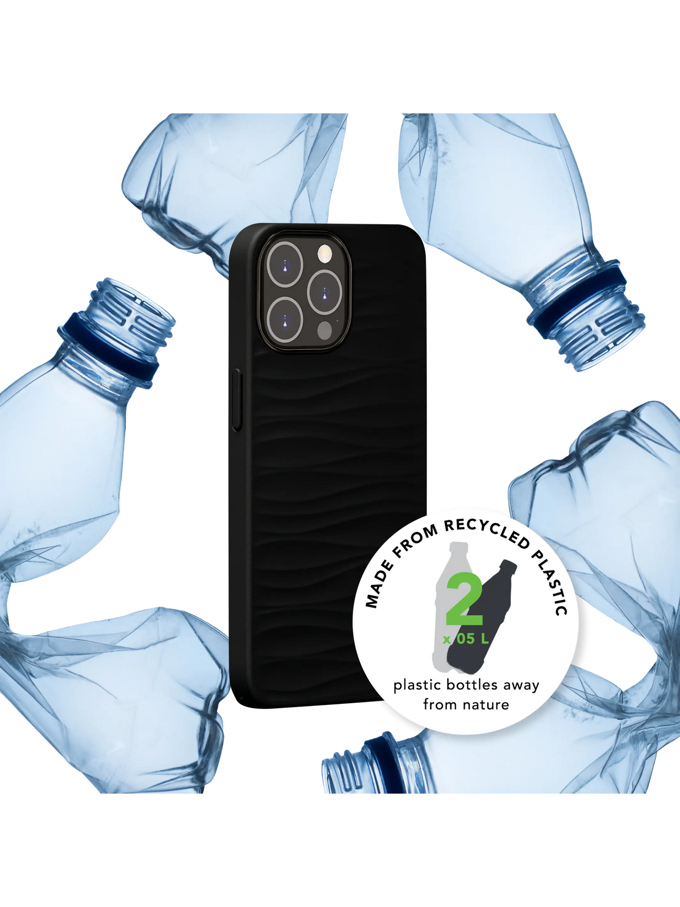 • Lavet af 100% GRS-certificeret genanvendt og genanvendelig plast (1 cover = 2x0,5l plastik flasker)