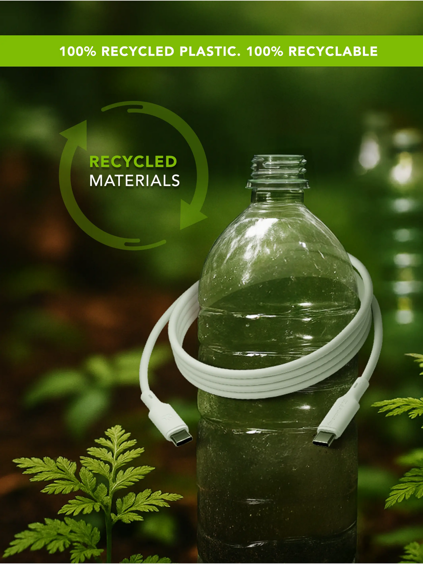 I modsætning til de fleste strømløsninger til enheder er vores opladere og kabler lavet af 100 % GRS-certificeret genbrugsplast og er 100 % genanvendelige. Takket være innovativ ultralydssvejseteknologi er vores opladere holdbare og ultraresistente uden brug af lim og skruer. Alle dele kan nemt adskilles under genbrugsprocessen.