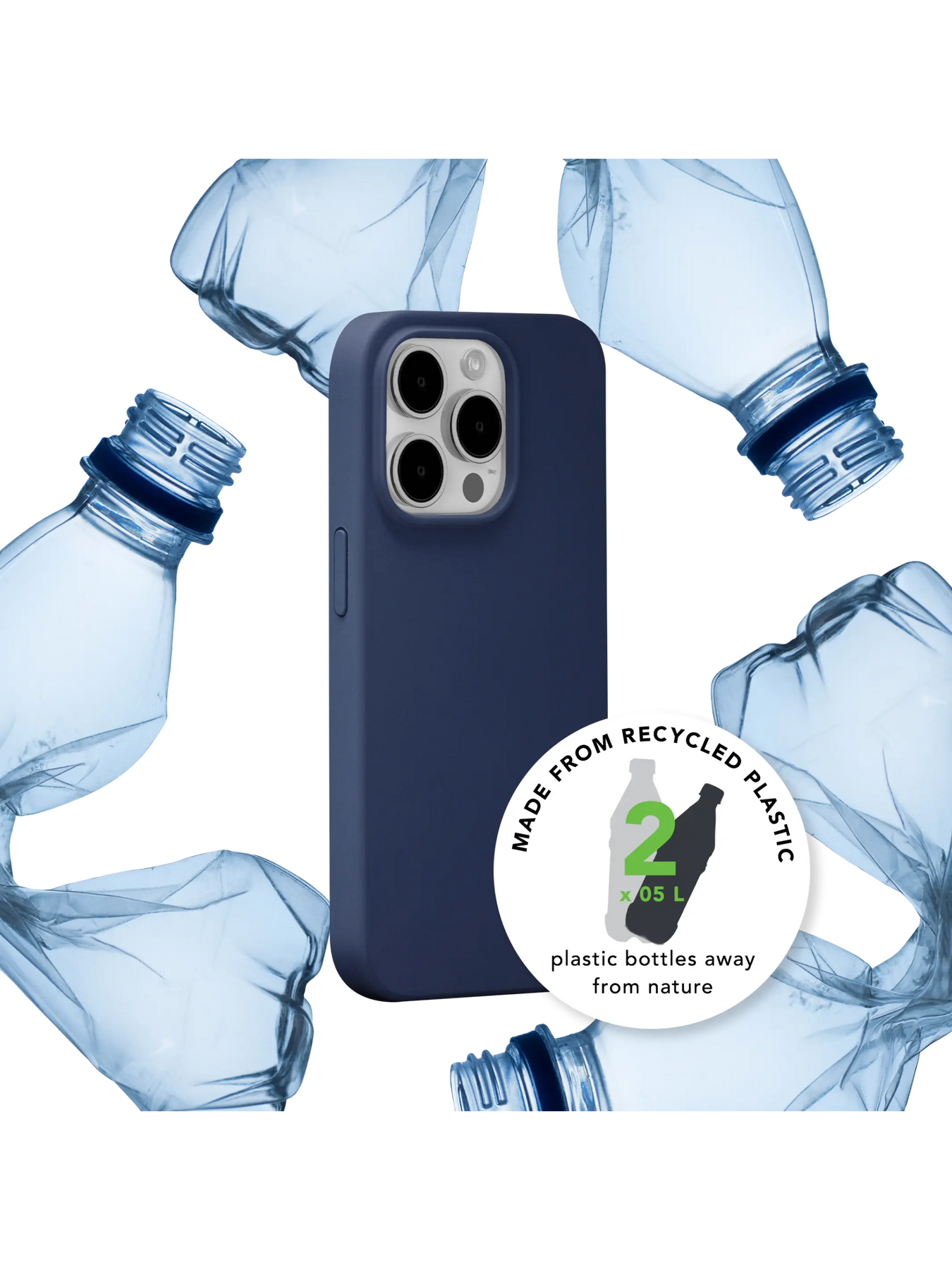 - Fremstillet af genbrugssilikone og GRS-certificeret genbrugsplast (1 cover = 2 x 0,5 l plastflasker). 100 % genanvendelig.