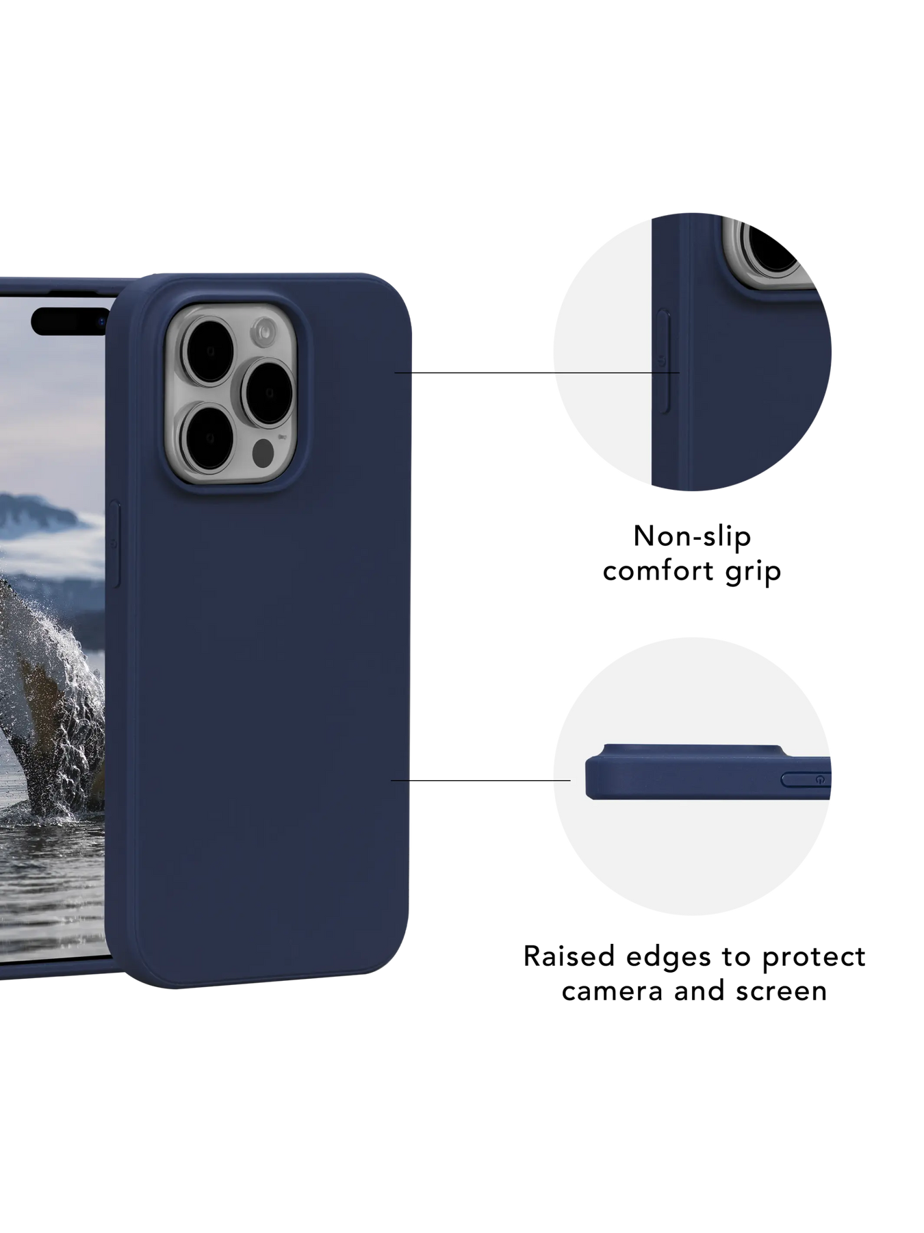 Greenland wurde entwickelt, um Ihr Gerät vor Stürzen zu schützen, und bietet Aufprallschutz aus 1,2 m Höhe. Erhöhte Kanten schützen Ihre Kamera und Ihr Display vor Beschädigungen.